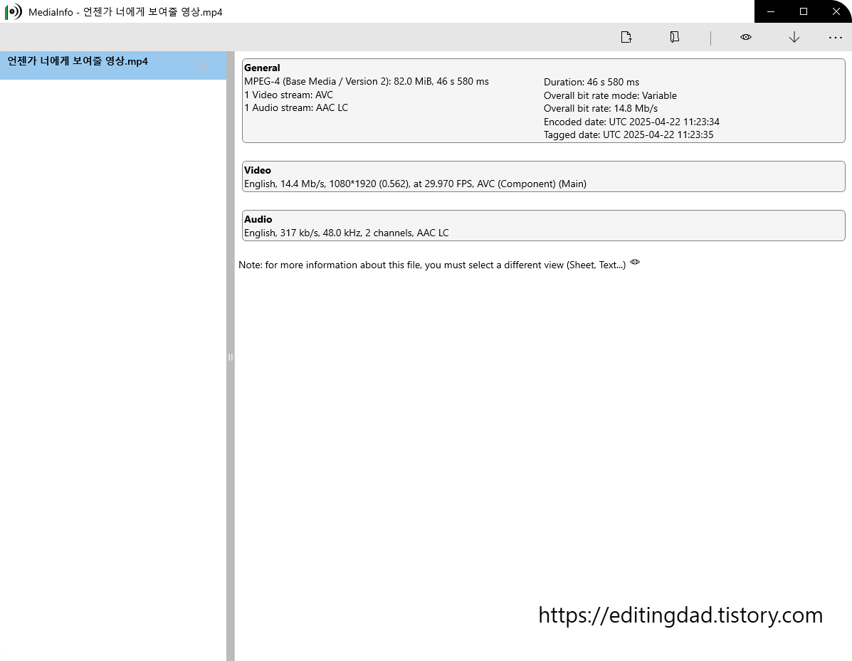 그때 MediaInfo를 실행합니다